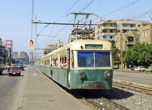 Heliopolis's tramfleet consists of three-car Japanese built/designed units. Cairo trams were added to the system as the Cairo urban lines were closed (for those trams see the Cairo section). Trams were green and light cream. During the second half of the 1990's a new livery of dark green with cream and a yellow stripe was applied. Series of modern trams are: