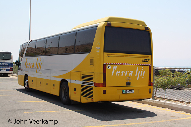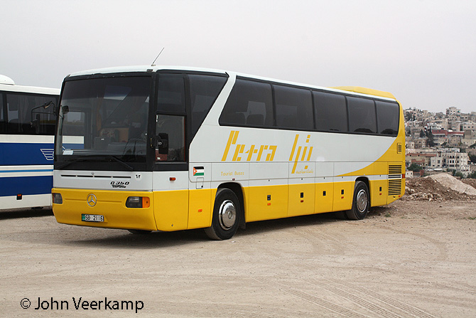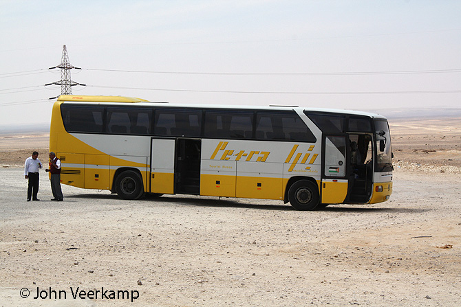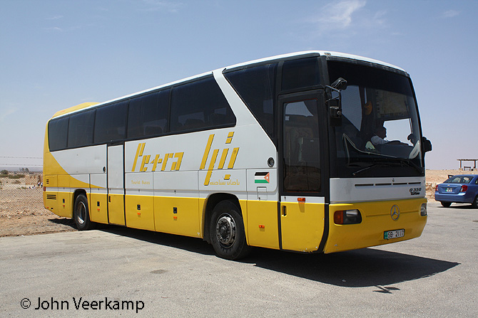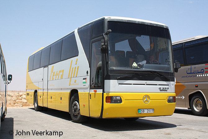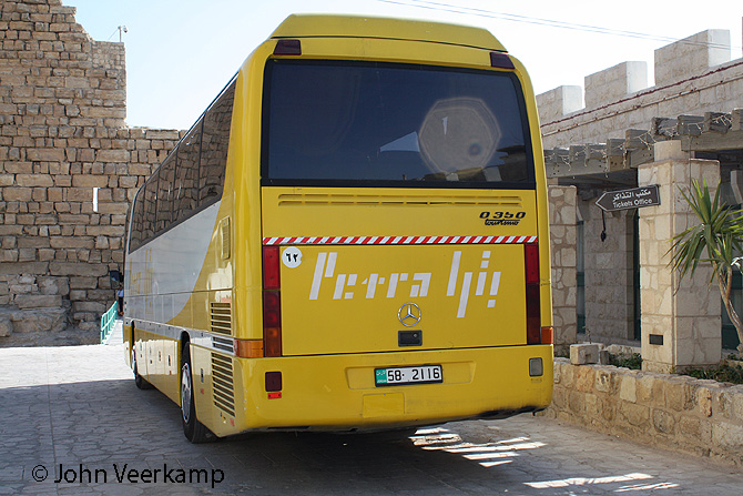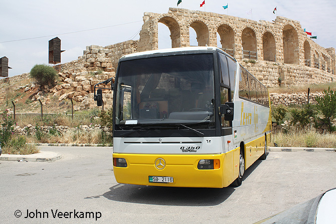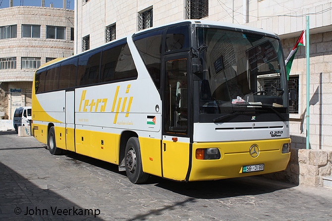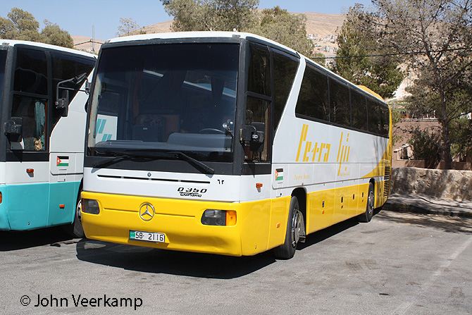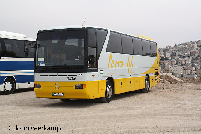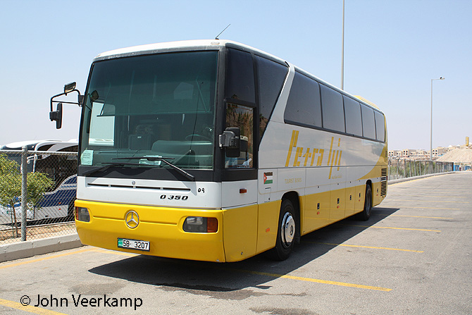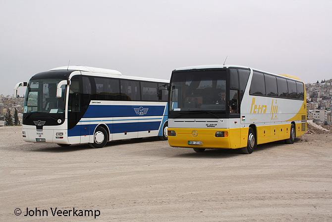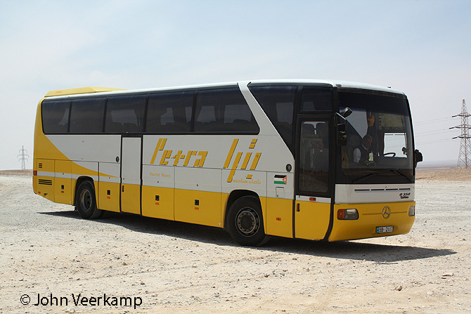 The yellow-white version of the Mercedes-Benz Tourismo is the most common with Petra. The coaches were seen in Amman at the Citadel, at the Dead Sea, at Petra and at Kasr Kharana.