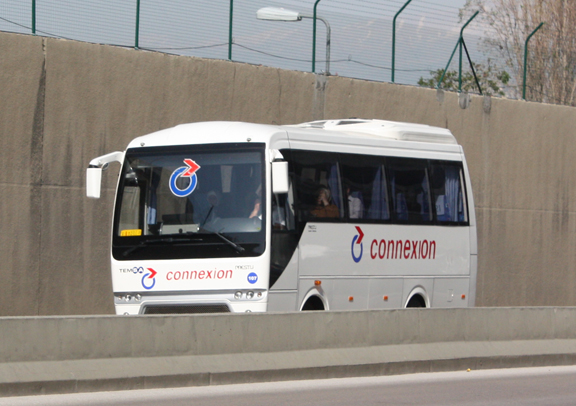 Connexion's TEMSA Prestij Super Deluxe are numbered in the 100-series. From top to bottom: 104, 104, 102, 105, 105, 105, 107.