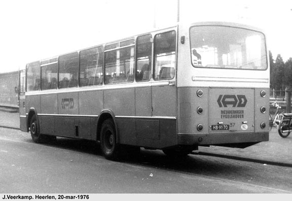Maart 1974 kreeg de IAO-van Kan een Leyland-Verheul LVB668 -Van Rooijen met achteruitstap. Wat bij deze bus ook opviel was de brede witte rand onder de voorruit. Ook de latere IAO bussen hadden deze brede rand, al was die dan grijs. De 37 ging niet over naar het VSL maar bleef bij de IAO-Van Kan, die later gewoon als Van Kan verder ging. Boven staat de bus in het nieuwe Heerlense busstation, onder staat hij nog voor het station.